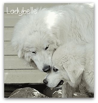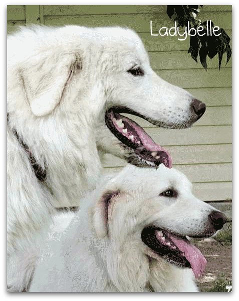 Their 12 year old Pyr had died and they went back to the same breeder to get another one thinking she would be of the same line as their former quiet beloved girl. The breeder hadn’t any but Ladybelle had just been returned at 8 months of age and was ready for a new home.