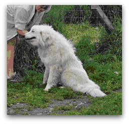 She was placed a second time with a lady who lost her 12 year old Pyr. She was looking for a replacement but was not up to the antics of a young Pyr still requiring lots of attention and exercise. As a result she is up for adoption again. She has a tattoo and I have her health records.