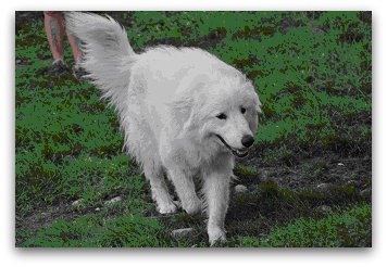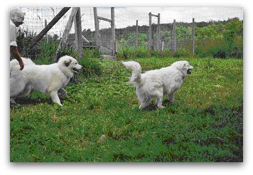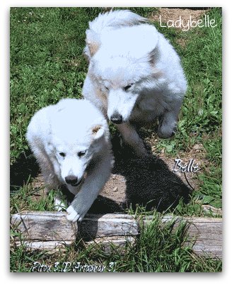 Ladybelle has turned out to be her own girl and not “like” any other. She is still an adolescent. She is smaller and will probably stay small. She is very active. She is not a quiet adult Pyr. She is a 14 month old, energetic Pyr who likes to run and play with other dogs.