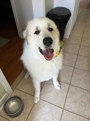 Required: Single detached home that has a large yard with a minimum of 5-foot fencing. No plastic grass please. Pyrs love to dig in the dirt to stay cool in the summer. He may even do well on a hobby farm with some coaching.