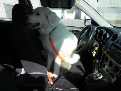 Elle! est une petite pyrénéenne de 7 mois qui a été donné en cadeau. Malheureusement, la maison avait déjà deux autres chiens, des mâles plus vieux, de race autre, qui n‘avait pas l’intention de partager l’attention de la dame. En bonne Pyrénéenne, Elle! se défendait de son mieux mais elle est encore jeune. Le comportement de gardien s’est développé plus tôt que d’ordinaire et elle tentait de défendre la dame des autres chiens.