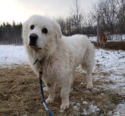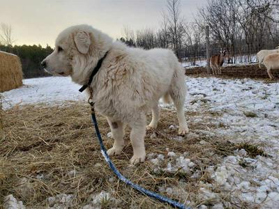 TRAINING FOR LIVESTOCK: There are a few who just want to be a companion dog. Most are natural guardian dogs of livestock. Yes, it is instinct. However, you must introduce your dog to any livestock slowly. This means leashing your dog to you as you work about the animals and barns so they get used to them. When you are not there, keep them penned near the animals so they get used to them. Fowl can be difficult for dogs because of how they move but it can be done. It will take at least a month for a Pyr to get used to the animals, maybe less. You’ll know when they are ready, and the dog will take it from there.