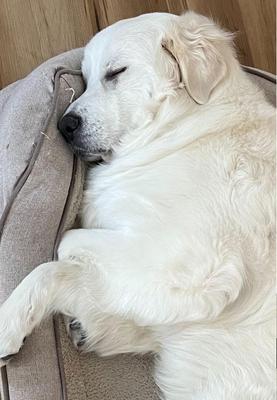 Her family needed to give up, again, when neighbour's complained about barking. As that was happening, we received an adoption application for someone looking for a friend for their Pyr. They know Pyrs well. It was just meant to be. Congratulations!
