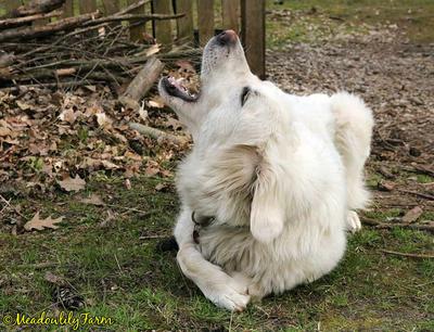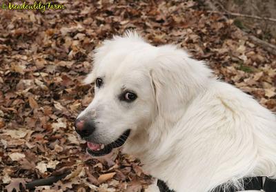 A young Akbash mix, this sweet girl came to us when her energy was just too much for her family.