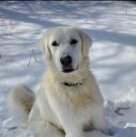 I really like and so recommend the Great Pyrenees for the job. They always seem happy and friendly, but underneath all of that tail wagging and smiling is a big, serious dog. When he “kicks into gear and goes to work,” he definitely means business. They are a large breed usually weighing about 150 pounds, but sometimes getting up to 200 lbs body weight. The Pyrenees is more of a “big bruiser,” than an athlete, with a deep, powerful voice. He is a low metabolism animal and so he eats about the same amount of food as an average sized dog. He is very hardy animal and completely happy sleeping out in the snow in mid winter. He doesn’t seem to need much of anything. I have seen some Pyrenees guarding sheep flocks on the prairies, while living completely “off the land”, catching and eating gofers, mice and rabbits. They were in good condition and doing just fine.