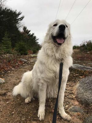 Polar is a 3-year-old Great Pyrenees that I adopted last March 2019 from a local rescue in Nova Scotia . We have three border collies, as well, and Polar plays wonderfully with them.